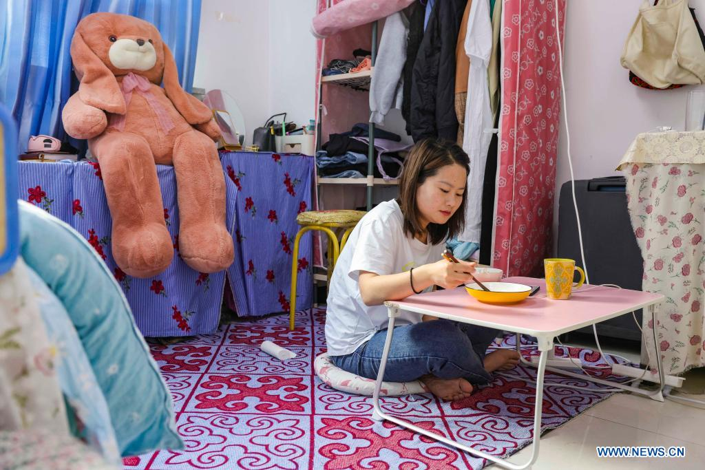 Chen Fangying has breakfast at Alimalik Village of Akto County, northwest China's Xinjiang Uygur Autonomous Region, May 12, 2021. Chen Fangying, a 24-year-old village teacher, is from southwest China's Guizhou Province. When she graduated from college two years ago, she chose to become a teacher in Xinjiang. The primary school where Chen teaches is located in the Kunlun Mountains, more than 1,800 kilometers away from Xinjiang's capital city Urumqi. "For me, this is the life I should live in my twenties," said Chen. Chen Fangying has more than ten classes every week, including Chinese, English and Music. In addition, she is also required to work with other teachers to develop solutions to help local teachers improve their capacity. Meanwhile, Chen often communicates with parents during home visits to help improve learning environment. Chen values the studies of 14 students in third grade most. According to local education policy, starting from the fourth grade, students are required to go to the County, 380 kilometers away from the village, to enjoy higher quality education. Chen is full of expectations for these students who will enter the fourth grade this September. She insists they should read more books so that they can learn more about the world outside the mountains. In her daily teaching, she focuses on activating the classroom atmosphere through novel teaching methods, broadening students' horizons and helping them build up confidence. In recent years, more and more tourists have come to the village. In the beginning, the students were shy about talking to tourists. However, Chen always encourages them to express their ideas with confidence. Now, they are much more outgoing. Chen is genuinely happy with the growth of her students. It's meaningful for Chen that the students would remember she had taught them after they walked out of the mountains and moved to the cities. (Xinhua/Hu Huhu)