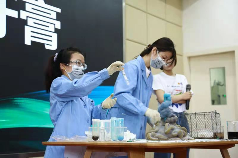 Researchers from the Chinese Academy of Sciences are performing experiments at the 17th Public Science Day in Beijing, on May 23, 2021.(Photo provided to Xinhua)