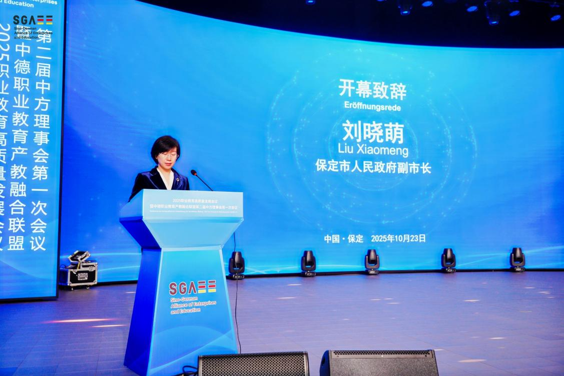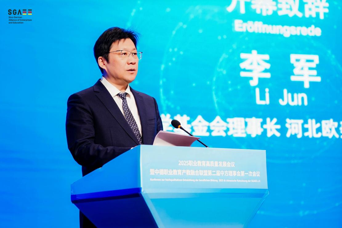 2025年10月23-24日,由欧美同学基金会、职业教育高质量发展会议组委会、德国世界技能大赛组织、中德职业教育产教融合联盟(以下简称“联盟”)共同主办、河北欧美同学会协办的“2025职业教育高质量发展会议暨中德职业教育产教融合联盟第二届中方理事会第一次会议”在河北省保定市职业教育园区举办。我会李军理事长出席会议开幕仪式,并代表欧美同学基金会与河北欧美同学会致辞。